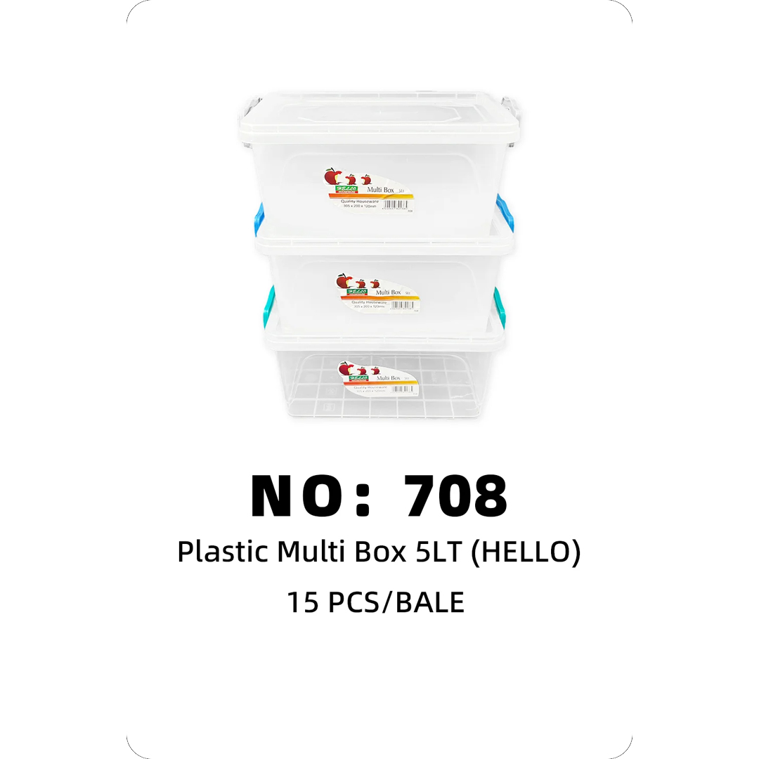 NO: 708 Square Transparent Storage Box 5LT HELLO 15PCS/BALE